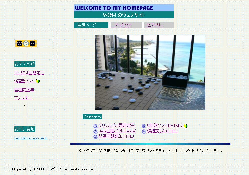 http://www5e.biglobe.ne.jp/~wam/ にアップされている、WⓐMの囲碁ページ(2019/03/25時点)のダウンロード版デジタルコンテンツです。